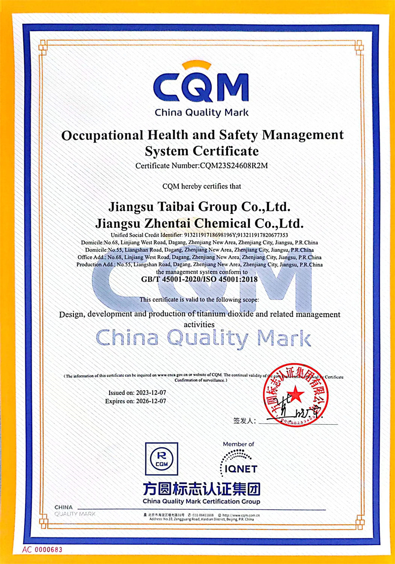 Jiangsu Taibai Group Co.,LTD. Address:No. 68 Linjiang West Road, Zhenjiang, Jiangsu Tel:86-511-83362923